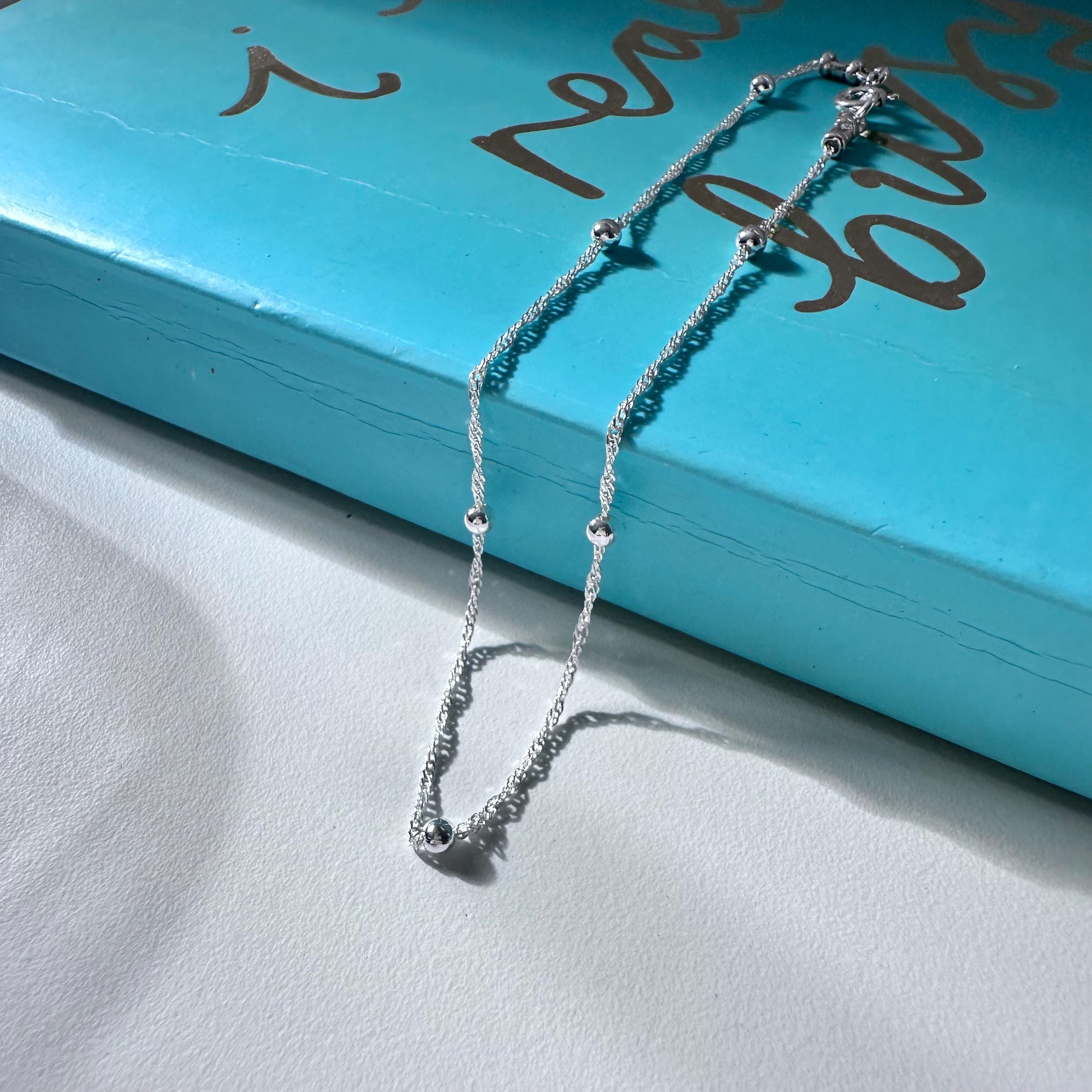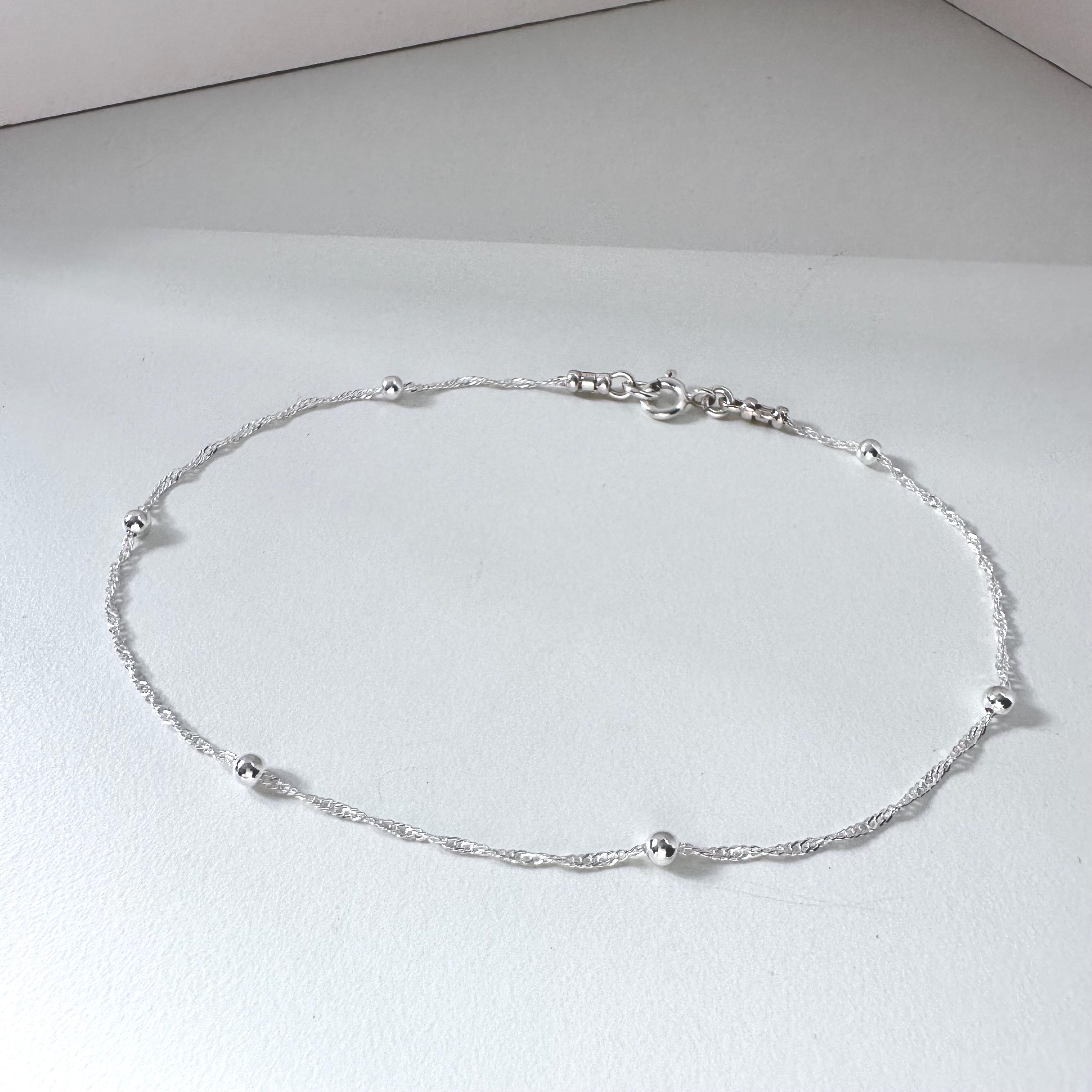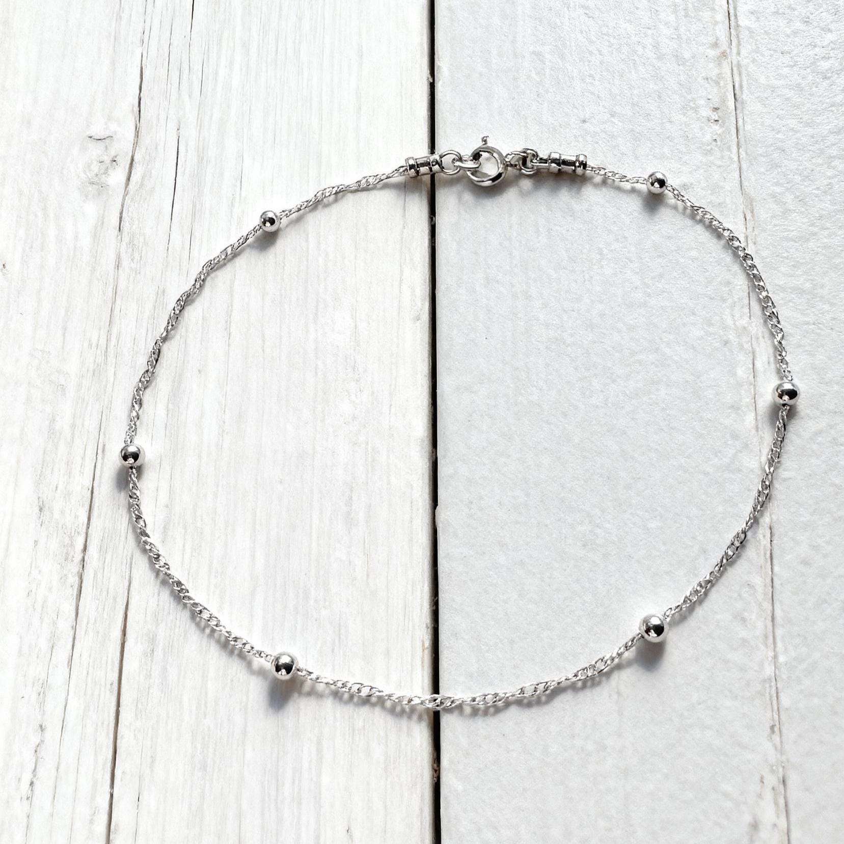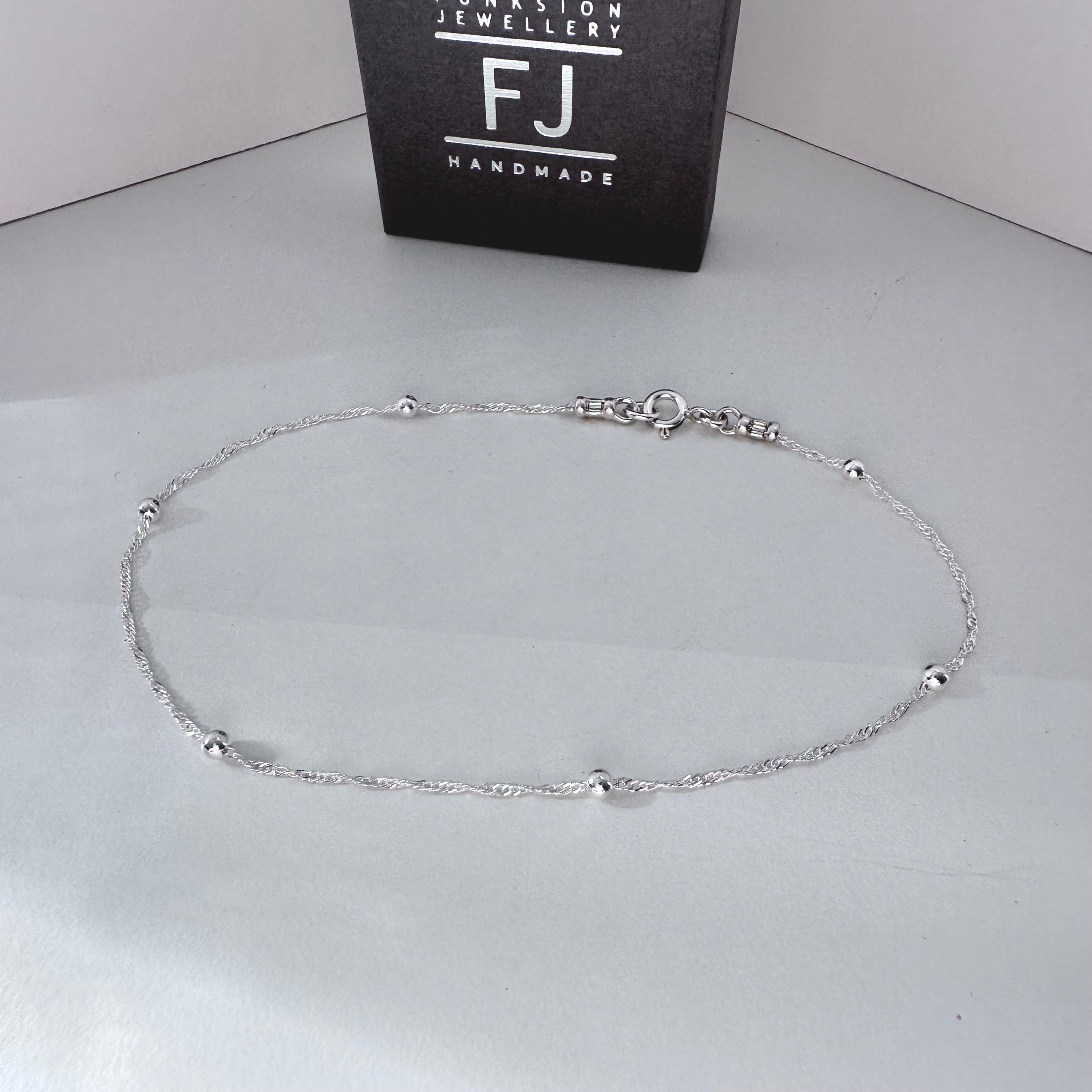 Handmade to order elegant and sparkling sterling silver satellite twist chain ankle bracelet, which catches the light beautifully, available in the size of your choice, perfect for layering & easy everyday wear.