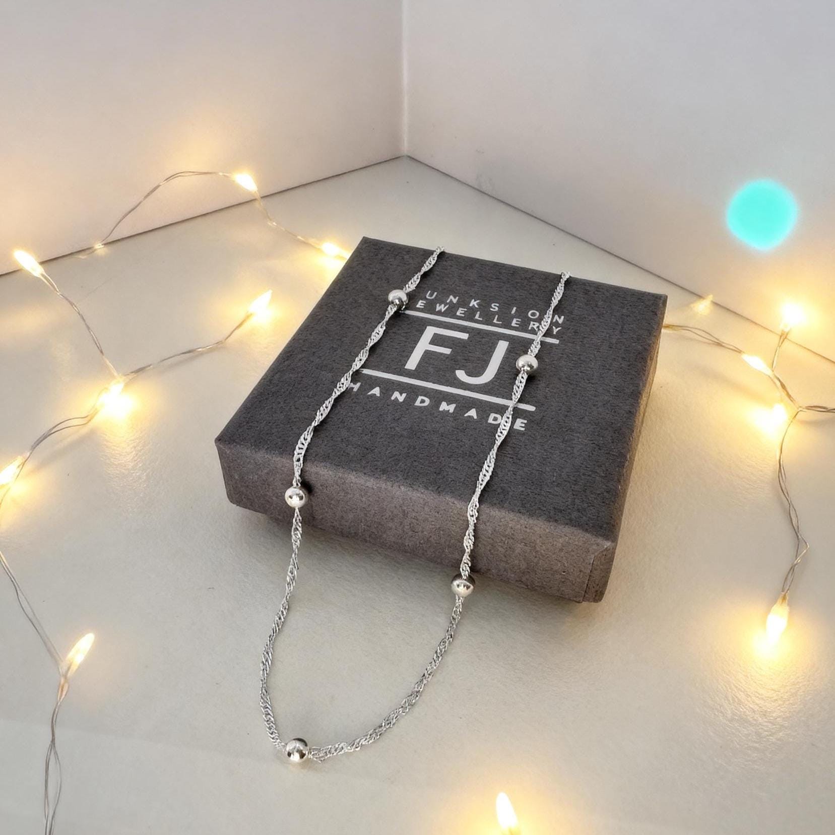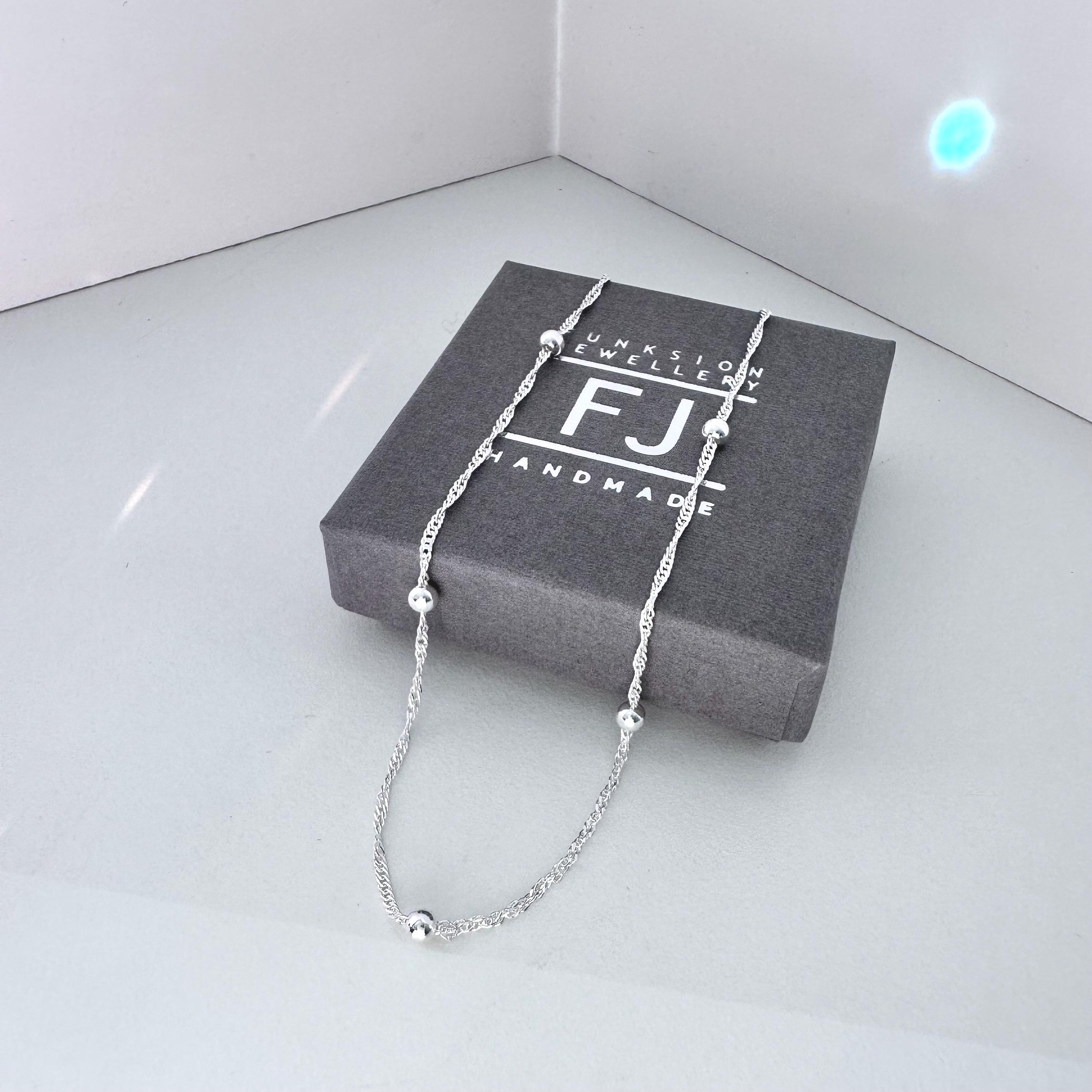 - 2mm twisted chain with equidistant 3mm satellite beads