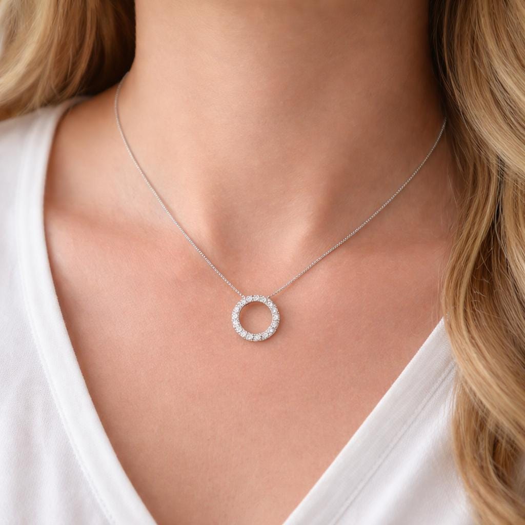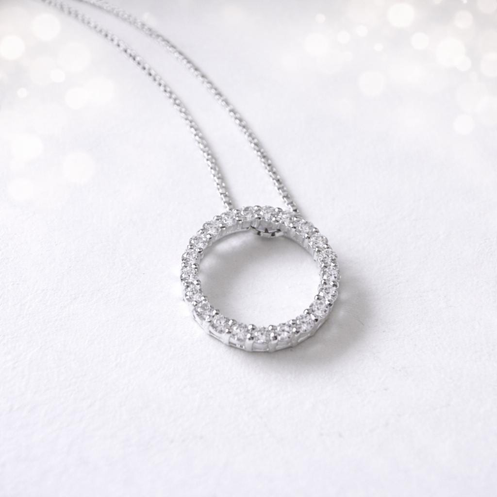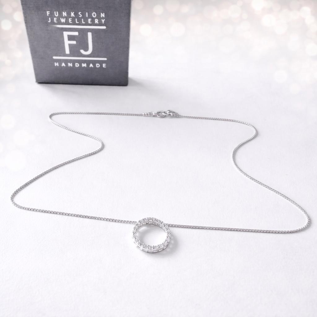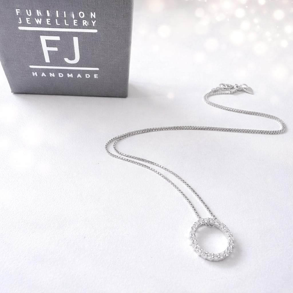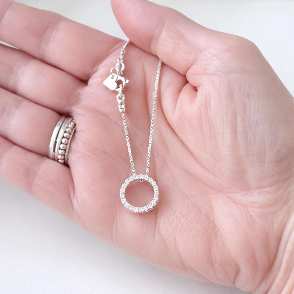 This handmade sterling silver box chain pendant necklace, features a gorgeous sparkling sterling silver & cubic zirconia pave circle of life pendant, the perfect necklace for layering or for easy everyday wear that you will love to wear and love to gift!
